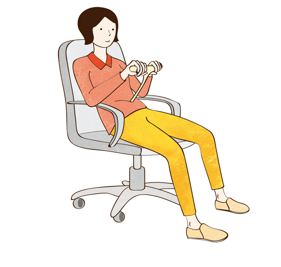 1. 의자에 앉거나 바닥에 눕는다. 의자에 앉을 때는 상체를 의자 등받이에 편안히 기댄다.