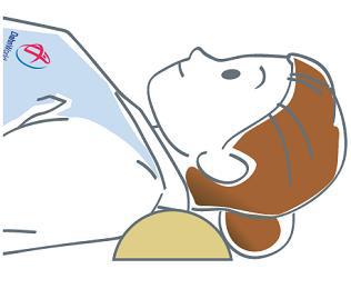 1. 편안히 누운 자세에서 목 뒤에 경침을 놓고 고개를 좌우로 흔들며 경추를 풀어준다.