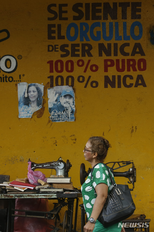 ▷ 본, 'Netizen Photo News' 는 가입 필요없이 손님께서도 연결에 넣어두고 날마다 보실 수 있습니다. (저작권 있음) '한국 네티즌본부' ○··· 【마나과(니카라과)=AP/뉴시스】23일(현지시간) 니카라과 수도 마나과에서 한 여성이 다니엘 오르테가 니카라과 대통령 부부의 사진이 붙은 재래시장의 의류 수선점 앞을 지나고 있다. 니카라과 야권은 다니엘 오르테가 정부에 대해 반정부 시위로 체포된 인사들의 전원 석방을 촉구하는 24시간 전국 총파업을 소집하고 국민의 동참을 호소했다. ☞ 원본글: 뉴시스| Click ○←닷컴가기. |
