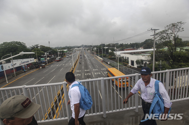 ▷ 본, 'Netizen Photo News' 는 가입 필요없이 손님께서도 연결에 넣어두고 날마다 보실 수 있습니다. (저작권 있음) '한국 네티즌본부' ○··· 【마나과(니카라과)=AP/뉴시스】23일(현지시간) 니카라과 수도 마나과에서 행인들이 총파업으로 한산한 도로 위 육교를 건너고 있다. 니카라과 야권은 다니엘 오르테가 정부에 대해 반정부 시위로 체포된 인사들의 전원 석방을 촉구하는 24시간 전국 총파업을 소집하고 국민의 동참을 호소했다. ☞ 원본글: 뉴시스| Click ○←닷컴가기. |