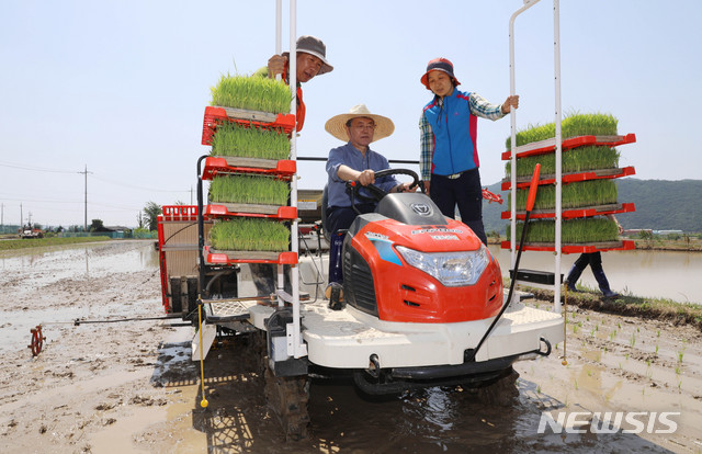 ▷ 이앙기 이용해 모내기 직접 참여…땀흘리는 농업인들 격려 드론 비료살포, 무인 이앙기 시연 참관…농업 첨단화 강조 주민들과 국수·막걸리 새참도…文 "올해 대풍될 것 같은 예감" "정부, 농가소득 증대 최선…농업정책 만큼은 칭찬해 줬으면" ◇ 문재인 대통령은 24일 경북 경주시 안강읍 옥산마을을 찾아 봄철 모내기 작업에 한창인 농업인을 격려했다. 이날 현장 방문은 본격적인 모내기철을 맞아 안전하고 건강한 먹거리 생산을 위해 땀 흘리는 농업인들을 격려하기 위해 마련됐다. 행사에는 옥산마을 주민 40여명과 청와대 및 정부 관계자 등 총 60여명이 참석했다. <△ 사진:> 문재인 대통령이 24일 경북 경주시 옥산마을 모내기 현장에서 이앙기에 모판을 적재하고 있다 ○··· 이개호 농림축산식품부 장관, 이철우 경북도지사, 주낙영 경주시장, 허대만 더불어민주당경북도당위원장, 김경규 농촌진흥청장, 김병원 농협중앙회장이 함께했다. 청와대에서는 강기정 정무수석, 박상훈 의전비서관, 조한기 1부속비서관, 박영범 농해수 비서관, 고민정 대변인이 참석했다. 문 대통령이 찾은 안강읍은 경주 북서쪽 끝에 자리하고 있다. 안강평야를 중심으로 집단화된 들녘을 갖춘 경주의 대표적인 쌀 주산지다. 남색 정장 바지에 같은 색 재킷 차림으로 옥산마을에 도착한 문 대통령은 주낙영 시장으로부터 경주 농업 현황을 보고 받았다. ◇ 경주가 1만1900호 농가에 3만8700여명이 종사하는 경북도내 최대 농업 도시라는 점과 유네스코 세계문화유산 등재 신청을 한 옥산서원에 대해 소개 받았다.설명을 들은 문 대통령은 "경주의 농업 경쟁력이 (이토록) 높다는 게 놀랍다"며 "서원이 유네스코 문화유산으로 등재되면 더 많은 관광객이 유입될 것"이라고 말했다.△ 사진: 문재인 대통령이 24일 경북 경주시 옥산마을 모내기 현장에서 이앙기를 운전하며 모내기 작업을 하고 있다. ○··· 이후 문 대통령은 장화로 갈아 신고 모내기 작업이 기다리고 있는 1100평(약 3636㎡) 규모의 논으로 발걸음을 옮겼다. 문 대통령은 본격적인 모내기에 앞서 드론을 활용한 비료 살포 작업부터 관람했다. 농업용 대형 드론은 비료·농약 살포에 최적화 돼 있다. 별도 인력 없이 혼자서 넓은 땅을 관리할 수 있어 많은 농가에서 드론을 도입하고 있다. 문 대통령은 "지금 드론이 얼마나 (농업에) 활용되고 있나"라고 물었다. 김경규 농촌진흥청장은 "전국에서 1100여대 정도 보급된 것으로 파악하고 있다"며 "가격이 비싸 개별농업인 보다는 영농조합법인이 구입해서 공동으로 사용하고 있다"고 설명했다. ◇ 문 대통령은 "모내기를 (별도로) 하지 않고 벼를 '직파(直播·논에 바로 씨를 뿌리는 기법)' 하는 용도로도 드론이 사용되는가"라고 물었다. 김 청장은 "주로 농약, 비료, 종자를 살포하는 용도로 많이 쓰인다. 특히 가을 벼 위에 다음해 (농사를) 대비해서 사료 작물 종자를 뿌릴 때 가장 효율적"이라며 "농약을 뿌릴 때 (드론 프로펠러에서) 바람을 일으켜주기 때문에 효과가 크다"고 답했다.<△ 사진:> 문재인 대통령이 24일 경북 경주시 옥산마을 모내기 현장에서 비료 살포 드론을 조정하고 있다. ○··· 문 대통령은 "옛날에는 농약 살포 때문에 농민들이 이런저런 병에 걸리고 해로운 점이 있었는데 다행이다"라고 말했다. 문 대통령은 직접 드론을 운전해보면서 "비료 살포할 때는 무엇을 누르는가", "자동으로 살포되는가"라고 묻는 등 신기해 했다. 드론 조종을 도운 이승윤 경남농업기술원 교육관은 "지금 오른쪽으로 많이 치우쳤다", "방향이 거꾸로 가 있다. 천천히 가겠다"라며 운전이 서툰 문 대통령에게 설명했다.드론 조종을 마친 문 대통령은 이앙기(移秧機)에 올라 직접 논에 모를 심었다. 모판을 반듯하게 심기 위해 조심스럽게 이앙기를 몰았다. 20~30분 간의 모내기 작업을 마친 뒤에는 자율주행 무인 이앙기 작동 모습을 지켜보기도 했다. ◇ 문 대통령은 중간중간 젊은 부부 농부와 대화를 나누며 농업에 종사하는 데 따르는 현실적인 어려움 등을 물었다. "연간 소득이 얼마나 되는가. (혹시) 영업 비밀인가"라고 물어 웃음을 자아내기도 했다. <△ 사진:> 문재인 대통령이 24일 경북 경주시 옥산마을 모내기 현장에서 주민들과 새참을 함께 하며 막걸리를 마시고 있다. ○··· 마을 부녀회에서는 문 대통령을 위해 잔치국수, 두부, 막걸리 등 새참을 마련했다. 문 대통령은 마을주민과 막걸리 잔을 나누고 국수를 함께 먹었다.문 대통령은 "오늘 모내기에 같이 동참하게 돼서 아주 기쁘다. 오늘 보니까 올 한 해에는 정말 대풍이 될 것 같다"고 말했다. 이어 "또 우리 정부 들어서는 2년 연속 초과 생산량의 시장 격리 조치를 취해 쌀값을 상당히 올렸다. 그 점은 인정하시죠?"라고 정부의 수곡·수매 정책을 홍보하기도 했다. 주민들은 "네"라고 화답하며 박수를 쳤다. 문 대통령은 "앞으로 문화시설도 더 좋아져야 되고, 젊은 사람들이 올 수 있게끔 교육시설도 더 좋아져야 하지만 농가소득을 꾸준하게 높여나가는 데 최선을 다 하겠다"며 "정부 정책을 다 찬성하지는 않겠지만 그래도 '농업 정책 만큼은 잘한다' 그렇게 칭찬들을 해주시면 좋