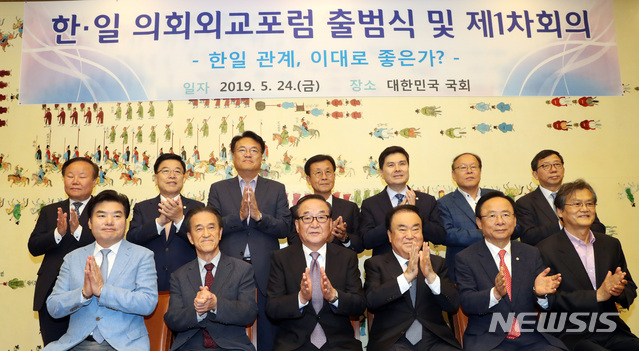 ▷ 본, 'Netizen Photo News' 는 가입 필요없이 손님께서도 연결에 넣어두고 날마다 보실 수 있습니다. (저작권 있음) '한국 네티즌본부' ○··· 24일 오후 서울 여의도 국회에서 열린 한·일 의회외교포럼 출범식 및 제1차 회의에서 문희상 의장과 서청원 한·일 의회외교포럼 회장 등 참석자들이 기념촬영을 하며 박수를 치고 있다. ☞ 원본글: 뉴시스| Click ○←닷컴가기. |