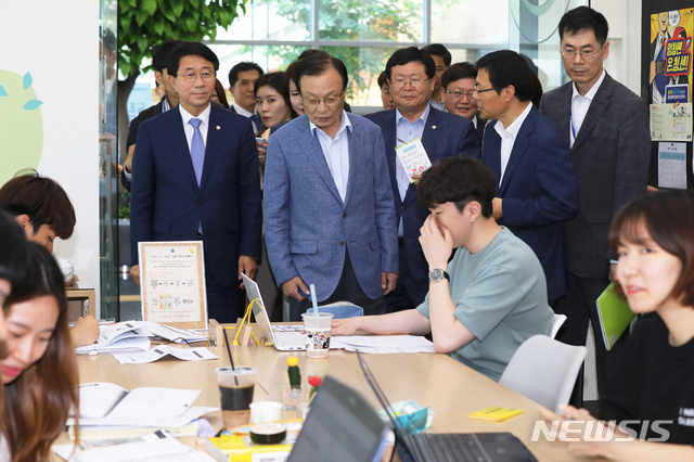 ▷ 본, 'Netizen Photo News' 는 가입 필요없이 손님께서도 연결에 넣어두고 날마다 보실 수 있습니다. (저작권 있음) '한국 네티즌본부' ○··· 【성남=뉴시스】이윤청 기자 = 더불어민주당 이해찬 대표가 24일 경기 성남시 성남고용복지플러스센터를 방문해 시설을 둘러보고 있다. 2 ☞ 원본글: 뉴시스| Click ○←닷컴가기. |