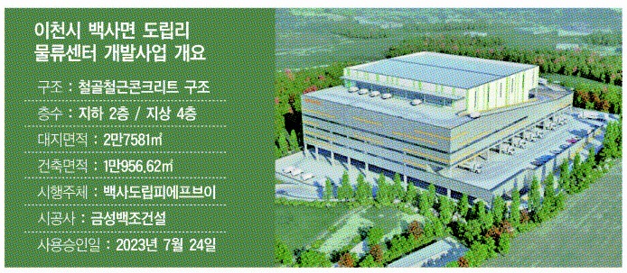 이번 물류센터 개발사업은 금성백조건설이 시공사로 참여해 지하 2층, 지상 4층 규모로 작년 7월에 준공을 마친 사업장이다.