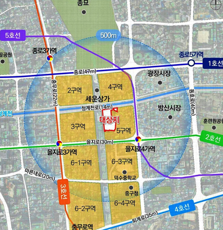 세운5구역PFV는 세운재정비촉진지구 5-1, 5-3구역에서 도시정비형 재개발사업을 진행하고 있 다. 중구 산림동 190-3번지 일원에 지하 8층~지상 38층 규모 업무시설 및 근린생활시설을 개발 할 예정이다. GS건설이 시공사로 참여한다.