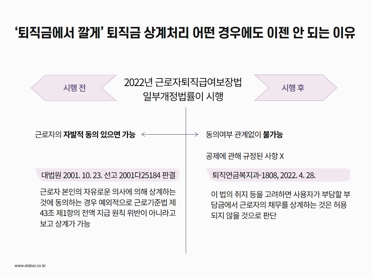 그렇다면 포스팅 제목처럼 이런 퇴직금의 상계가 이전에는 가능했는데 더 이상은 가능하지 않다는 말인데 이전에는 어떻게 가능했고 이제는 어떤 이유로 가능하지 않은 걸까요.