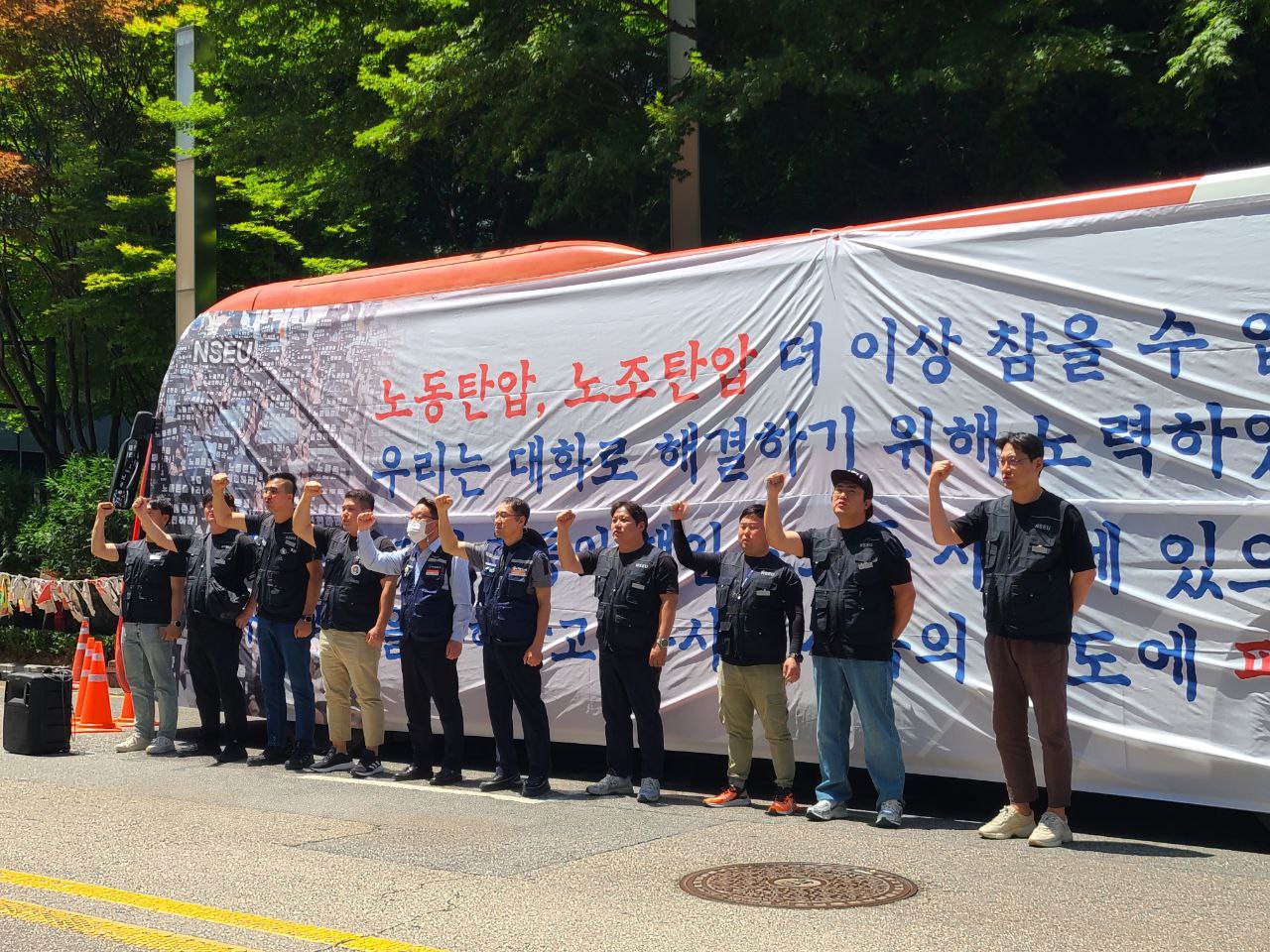 노조는 다음달 7일 ‘단체 연차 사용’으로 파업을 진행한다는 계획이다. 이현국 노조 부위원장은 “한 단계 한 단계 밟아 나갈 것이고 총파업까지 가기 위한 시작”이라며 “1호 지침 이후 2·3·4호 지침도 계획돼 있다”고 설명했다. 이날부터 서초사옥 앞 24시간 버스 농성도 진행한다.