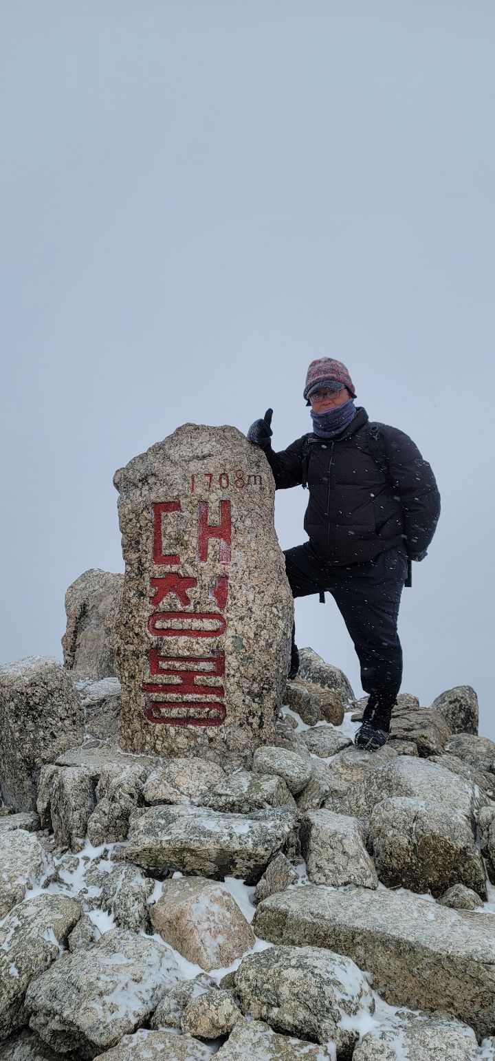정상에서 사진 찍는다고 장갑 벗었는데 동상 걸릴뻔 했어요