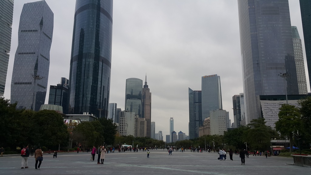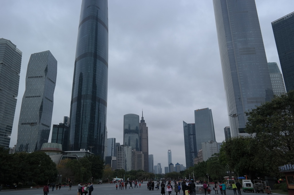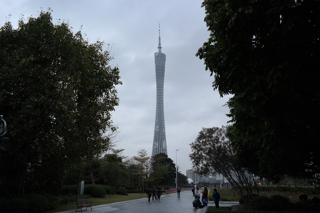 일본 도쿄 스카이트리(634m)에 이어 세계 두번째 높이를 자랑하는 광저우의 상징인 광저우 타워(600m)가 우뚝 솟아있다