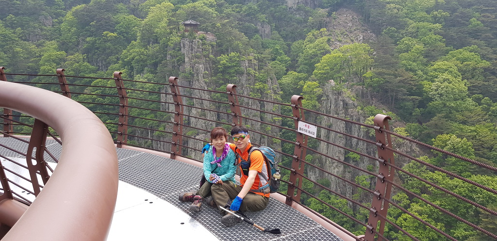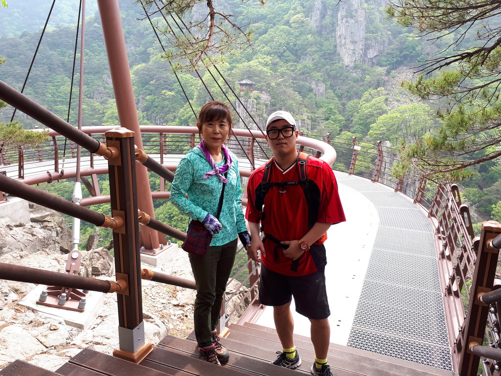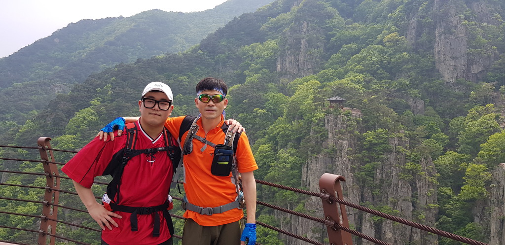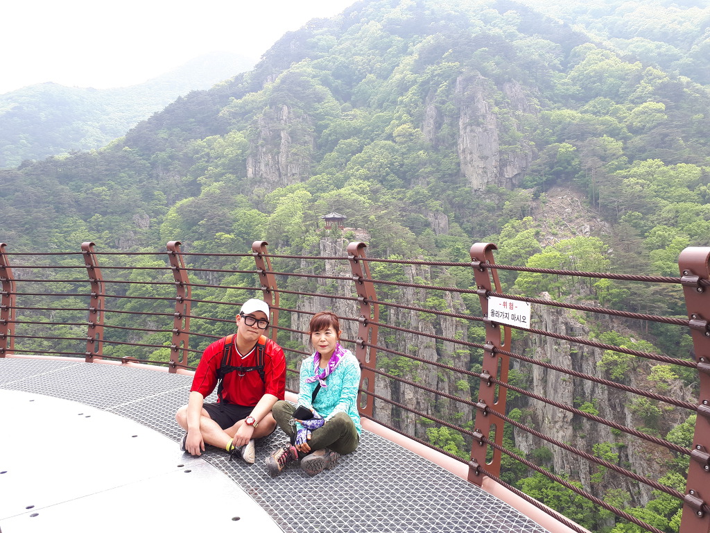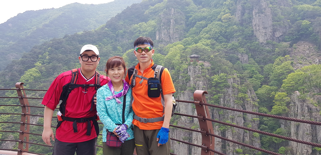 산행을 포기했던 아들도 계곡 트레킹으로 은폭포까지 갔다가 되돌아와 이곳 '소금강 전망대'에서 기다리고 있었다. 오가는 사람들이