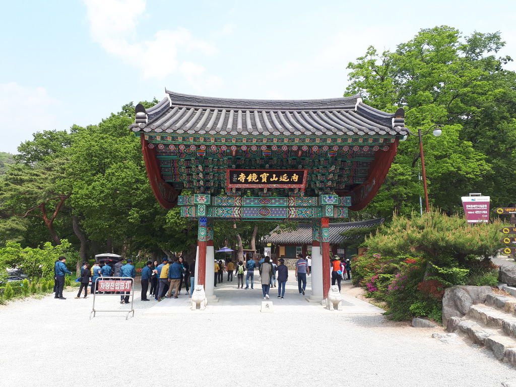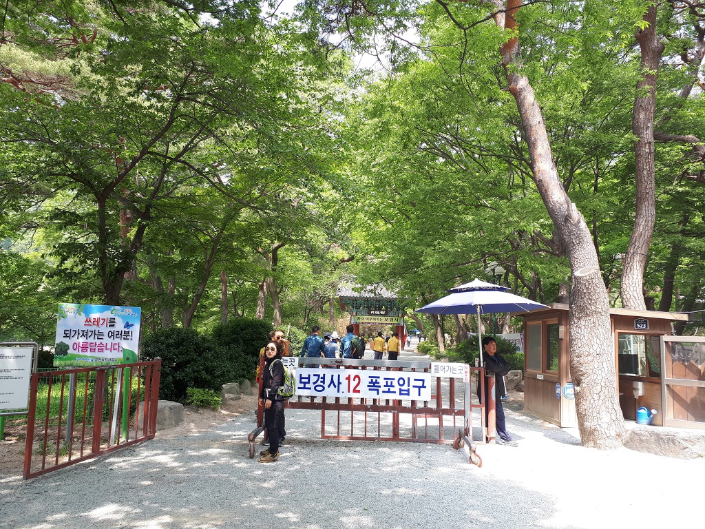 보경사 일주문을 나서며 내연산 문수봉, 삼지봉, 소금강 전망대를 돌아오는 13km 산행을 종료한다