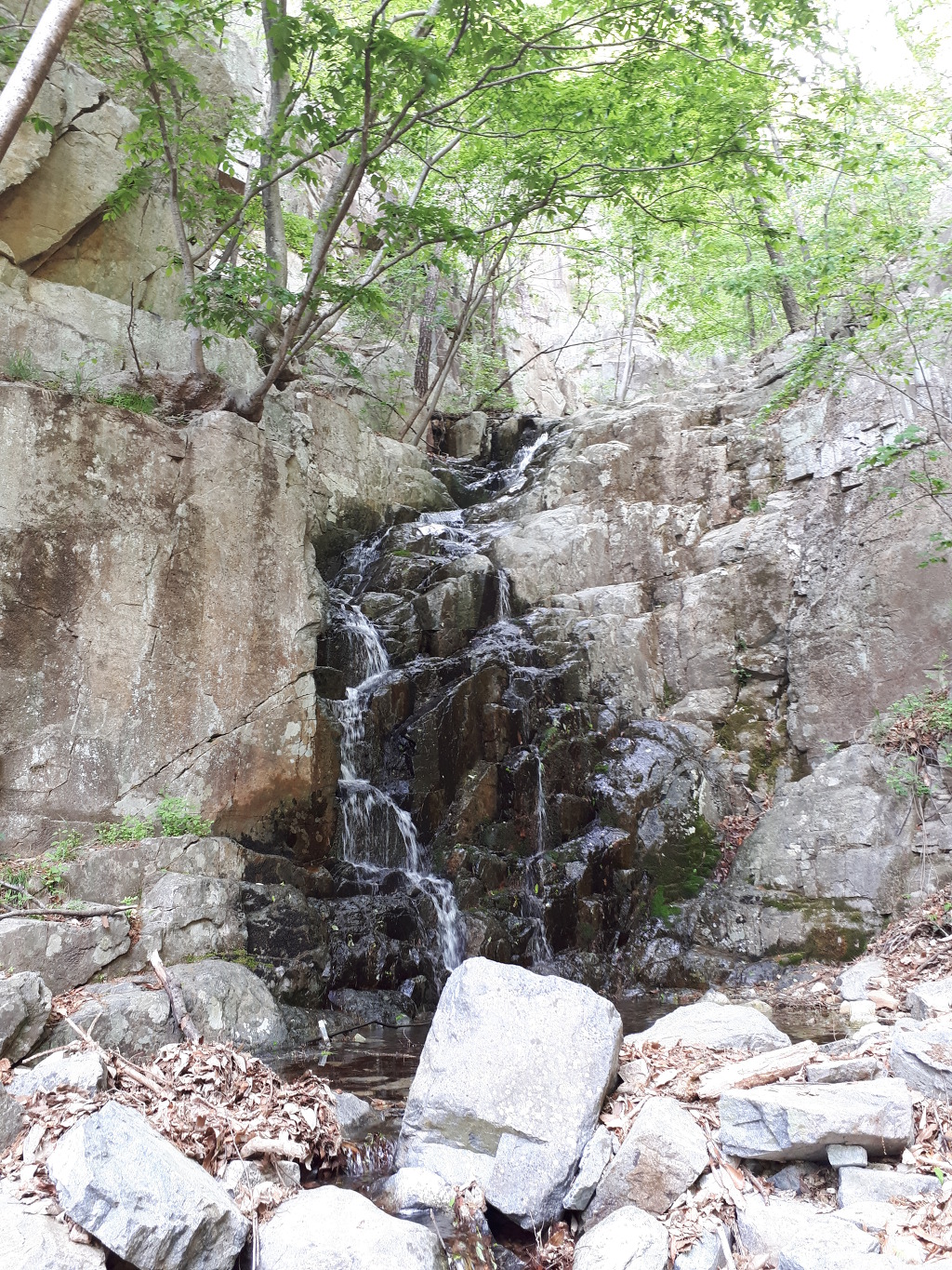 아내와 둘이서 문수봉, 삼지봉에 올라 100대 명산 인증샷 후 거무나리 코스로 하산, 막바지 연달래 꽃잎들이 한적한 숲길에 꽃길을 만들어 주고 근래 잦은 봄비로 수량이 늘어난 청하골 골짜기의 시원스런 물줄기가 반겨준다.