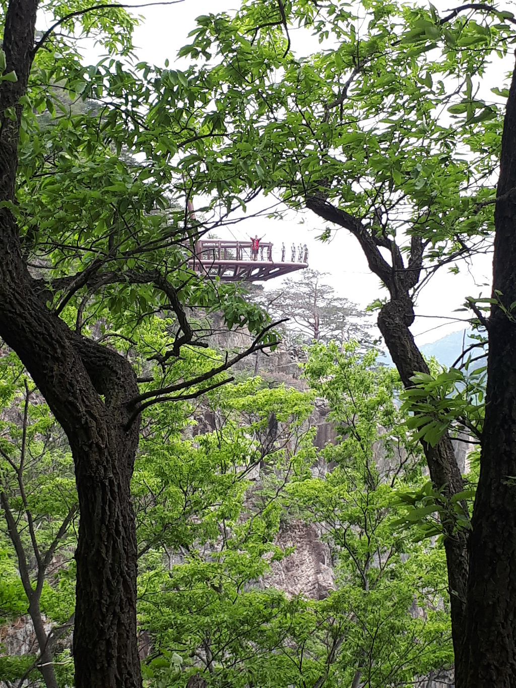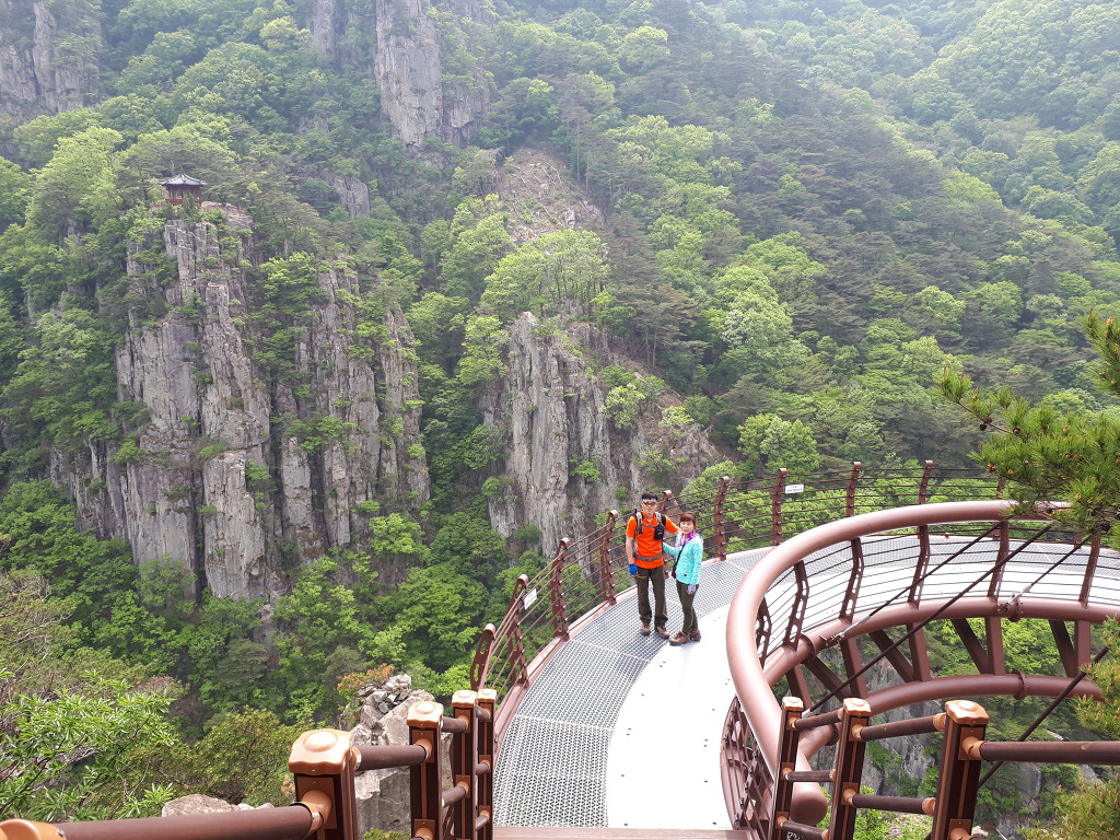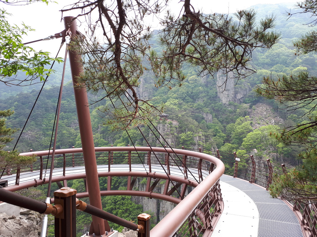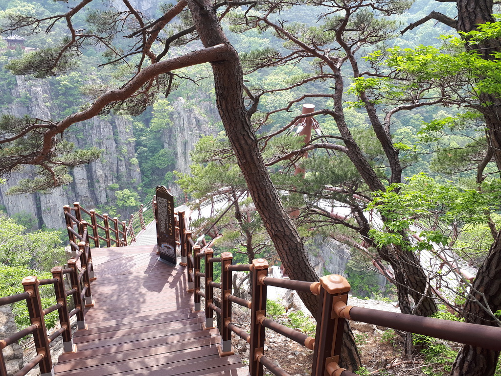 올 초에 개통된 소금강 전망대의 모습, 그 앞으로 보이는 선일대 전망대,