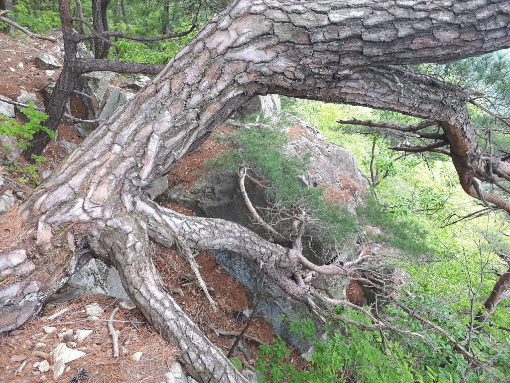 삼지봉 아래 동대산 가는 갈림길 직전 소나무 숲길