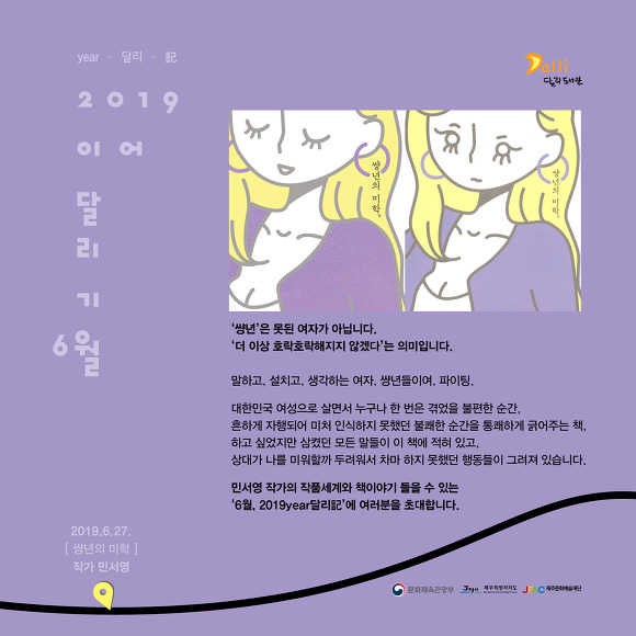 [6월, 2019year달리記] "썅년의 미학" 민서영 웹툰 작가와 함께 작성자달리도서관|작성시간19.06.12|조회수336 목록 댓글 0 글자크기 작게가 글자크기 크게가 * 민서영 작가의 [썅년의 미학]과 곧 발간 예정인 [썅년의 미학, 플러스]는 6월, 이어달리기에서 구입가능합니다~아~. 다음검색 현재 게시글 추가 기능 열기 북마크 공유하기 신고 센터로 신고 댓글 댓글 0 댓글쓰기 답글쓰기 댓글 리스트