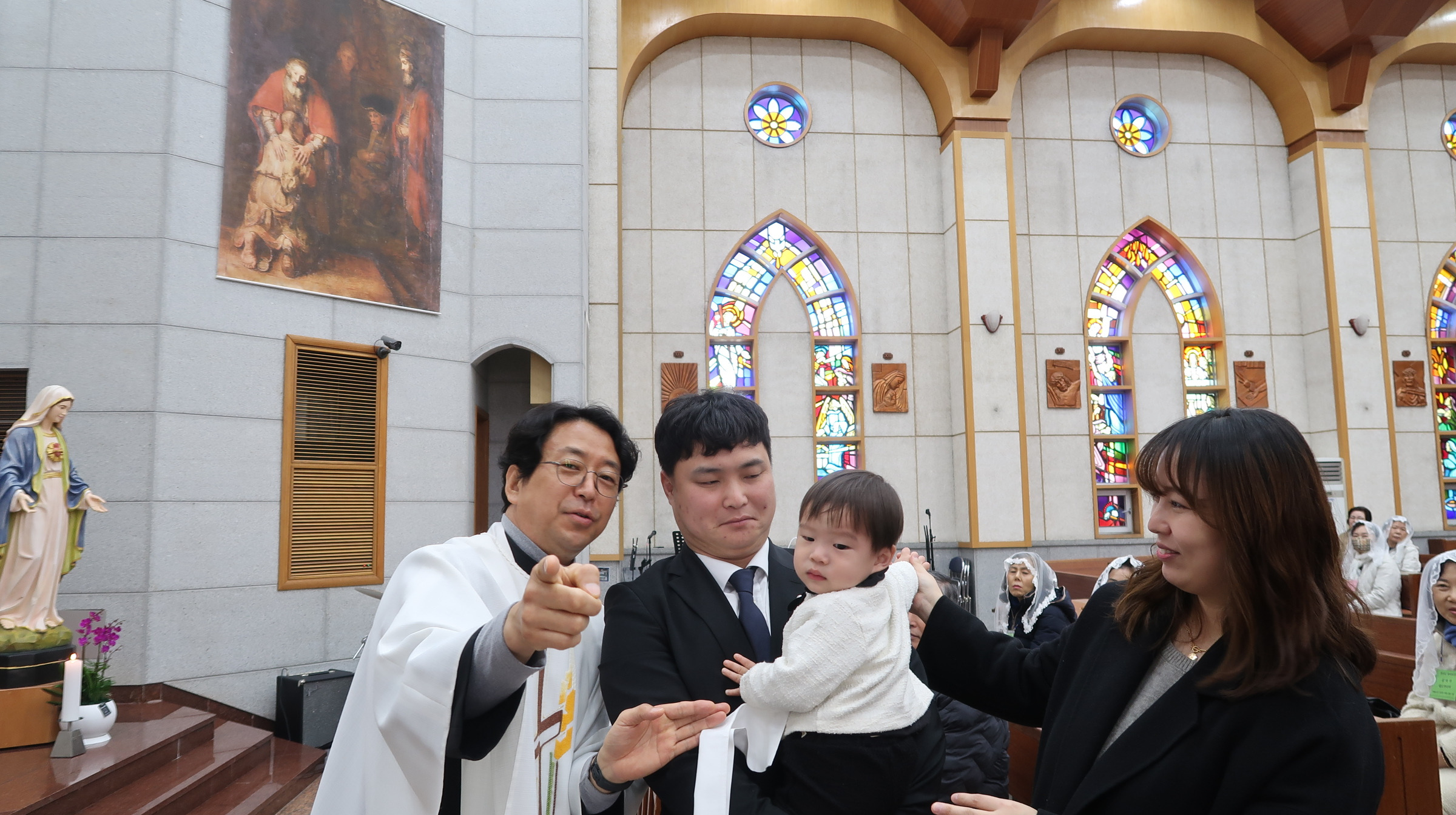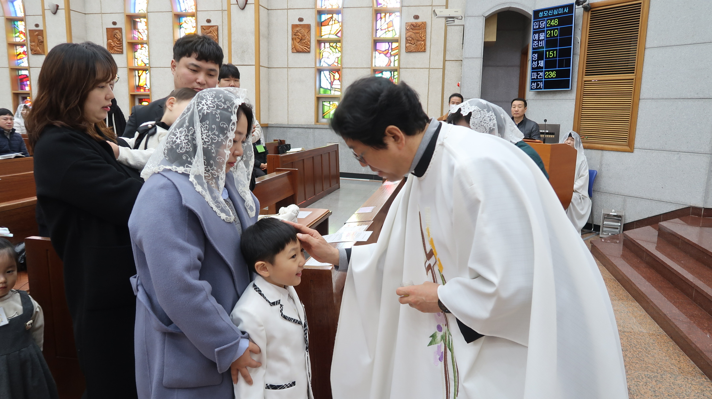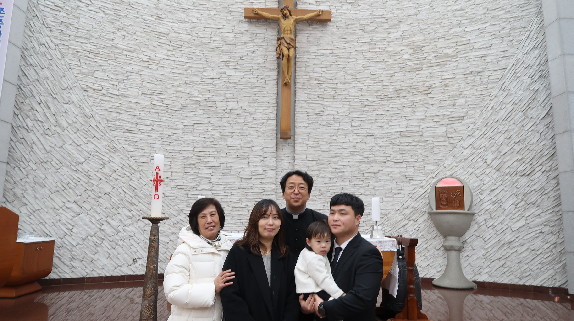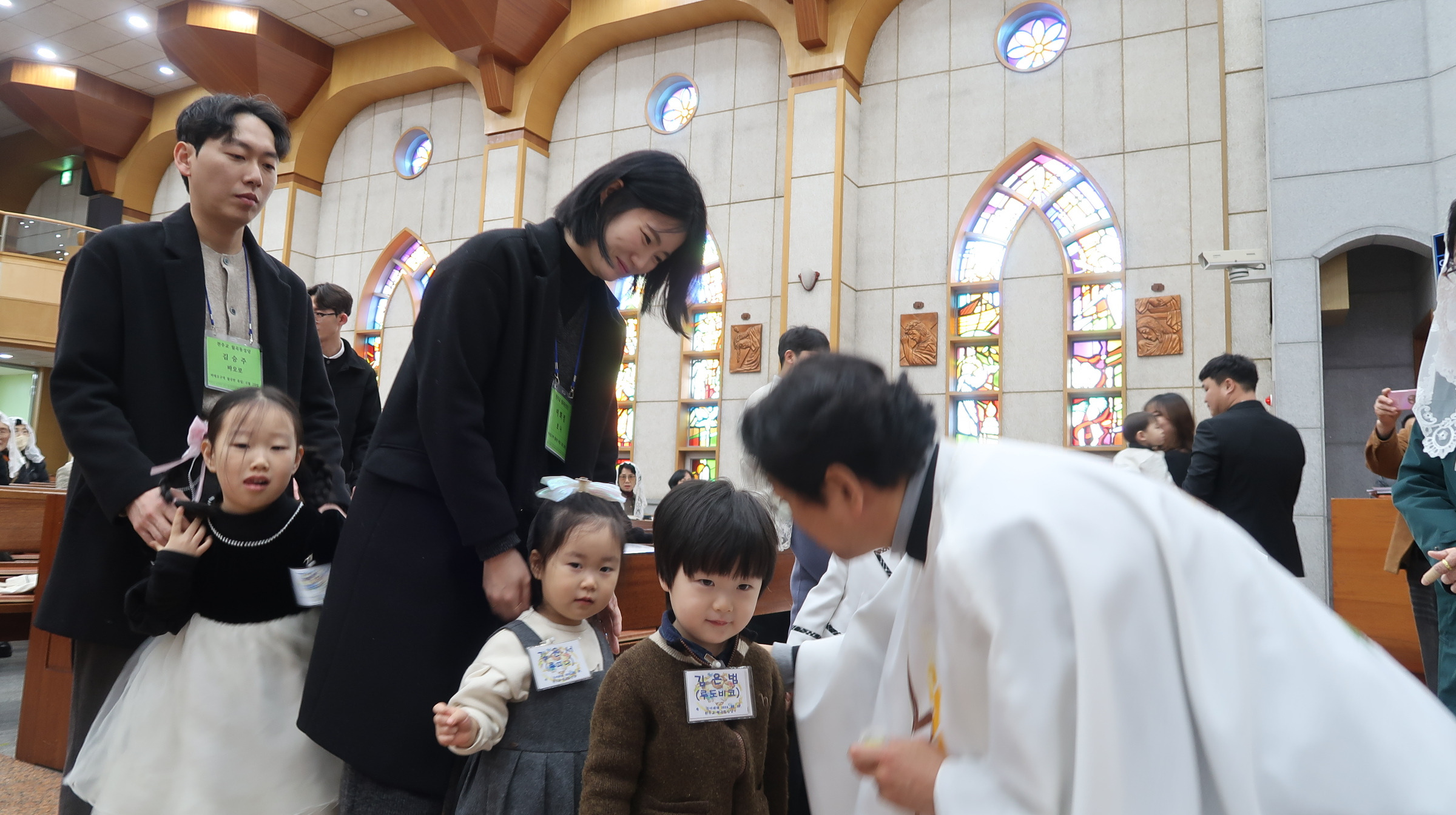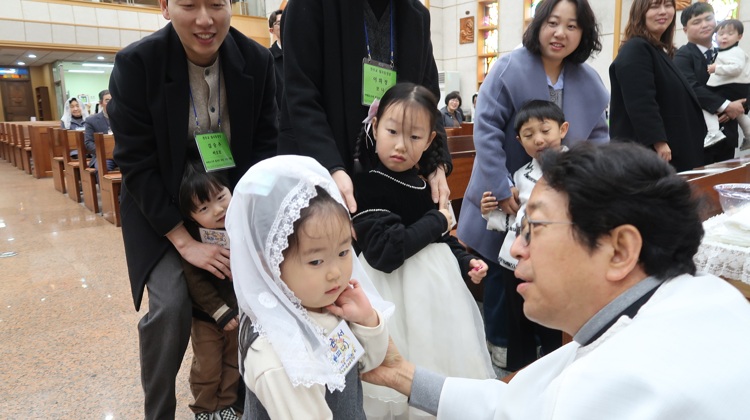 주임(이준한 토마스) 신부님께서 5명의 천사들에게 세례명을 주는 유아세례식이 있었습니다.