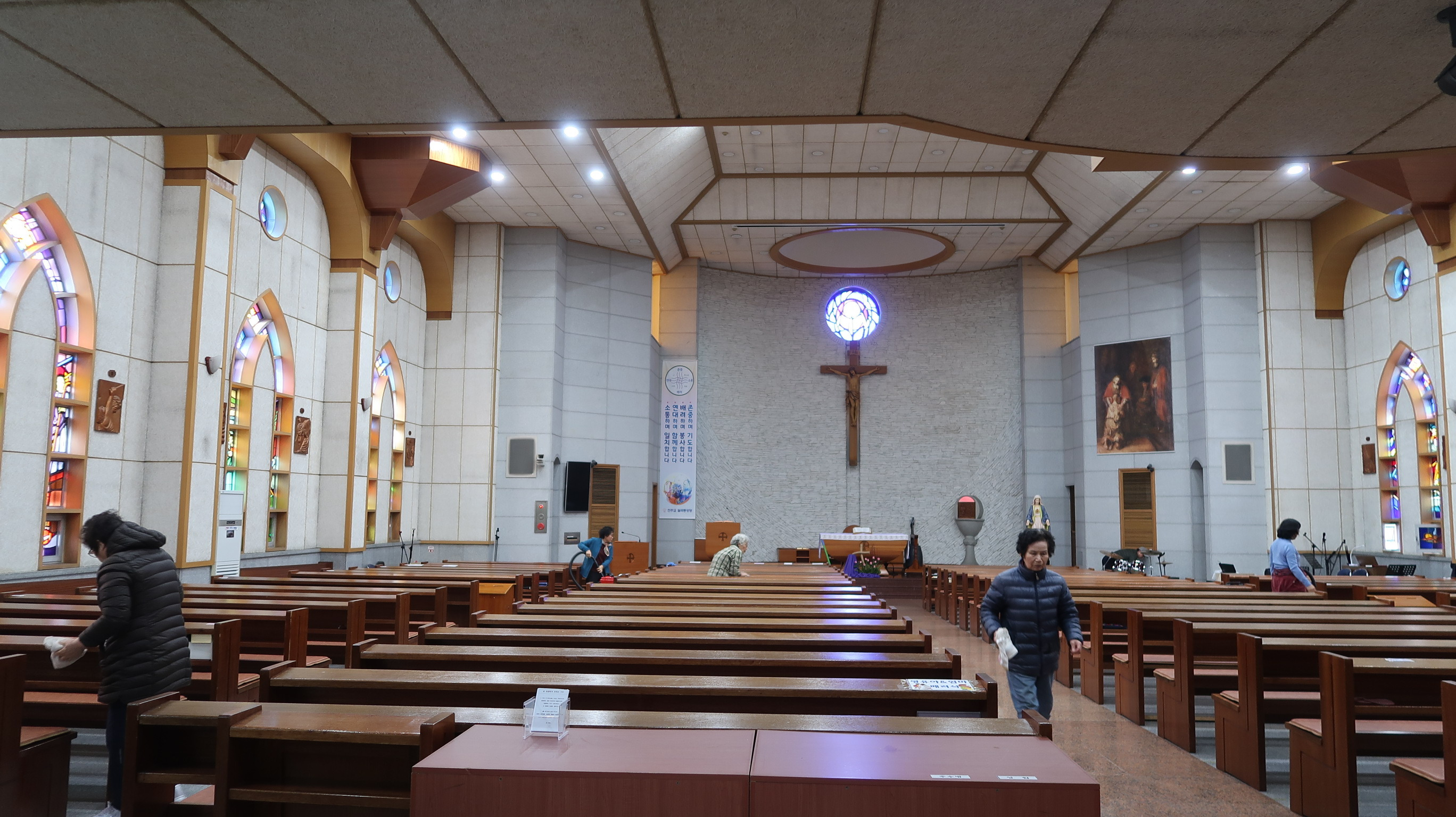 주임(이준한 토마스) 신부님과 교우 200여명이 맡은 구역별 청소를 진행했으며, 형제님들은 전지작업과 묵은 짐 정리하는 등 부활대축일 준비를 마쳤습니다.