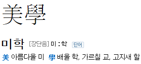 영어로는 aesthetics, 흥미있는 대상의 지각 혹은 바라봄이라는 의미의 희랍어 aisthesis에 어원을 두고 있다.