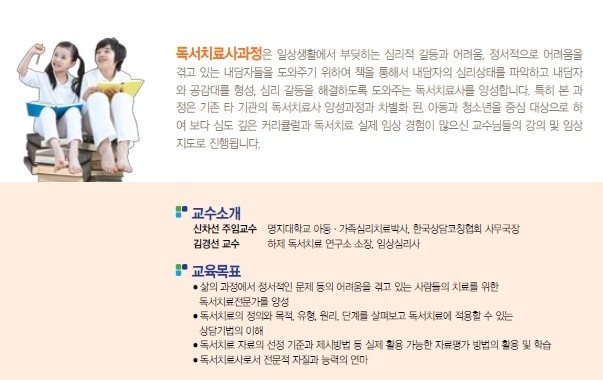 * 특전 : 대학 총장명의 독서치료사 자격증 발급