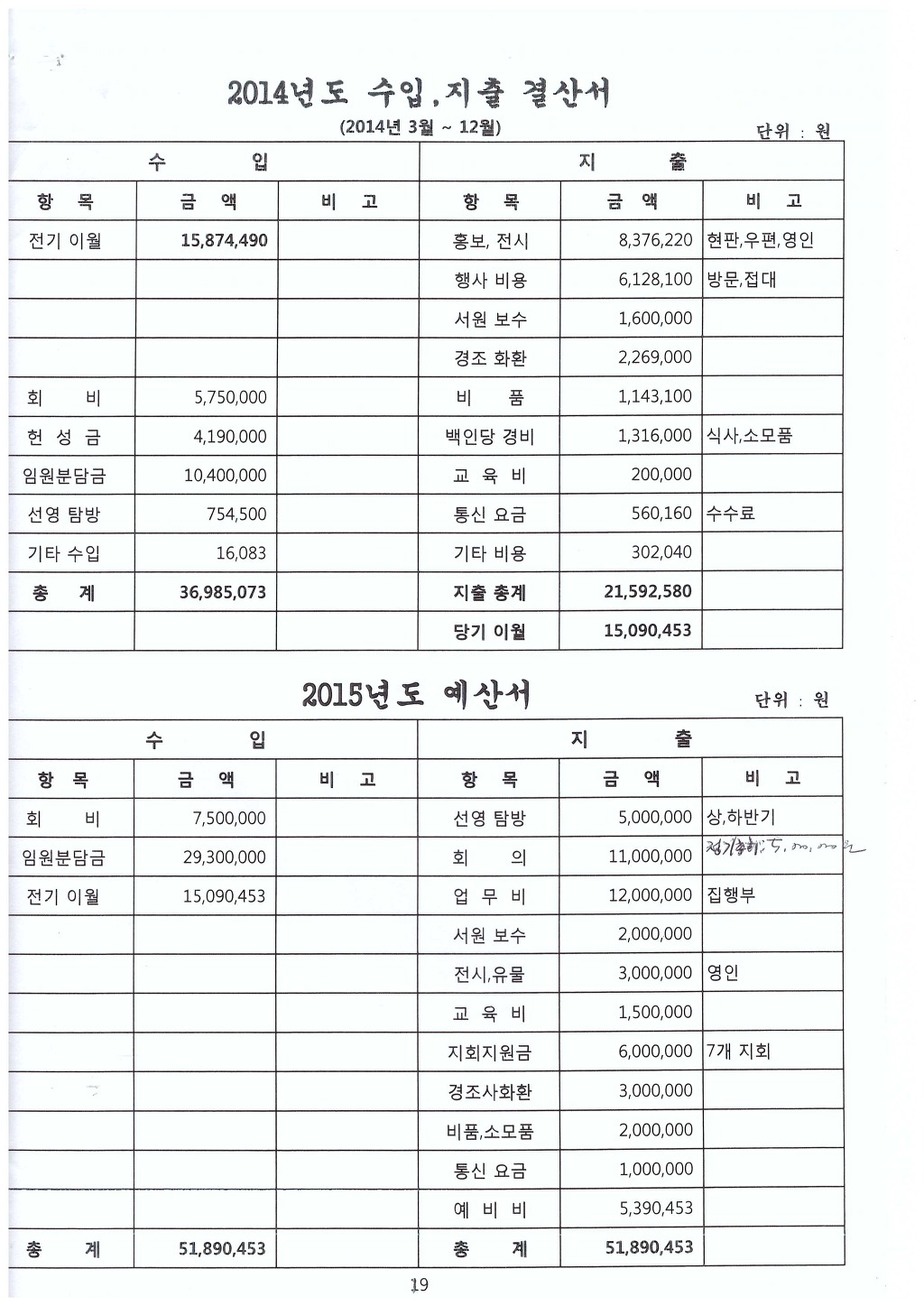❀ 2015년 豫算書 -------19쪾