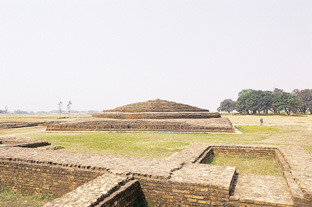 | 사진설명: "석가족 출신인 부처님의 유골"이라는 명문이 새겨진 유물이 발견된 스투파. 이를 근거로 인도측은 이 일대(간와리야 포함)가 카필라바스투 궁성이었다고 주장한다. |