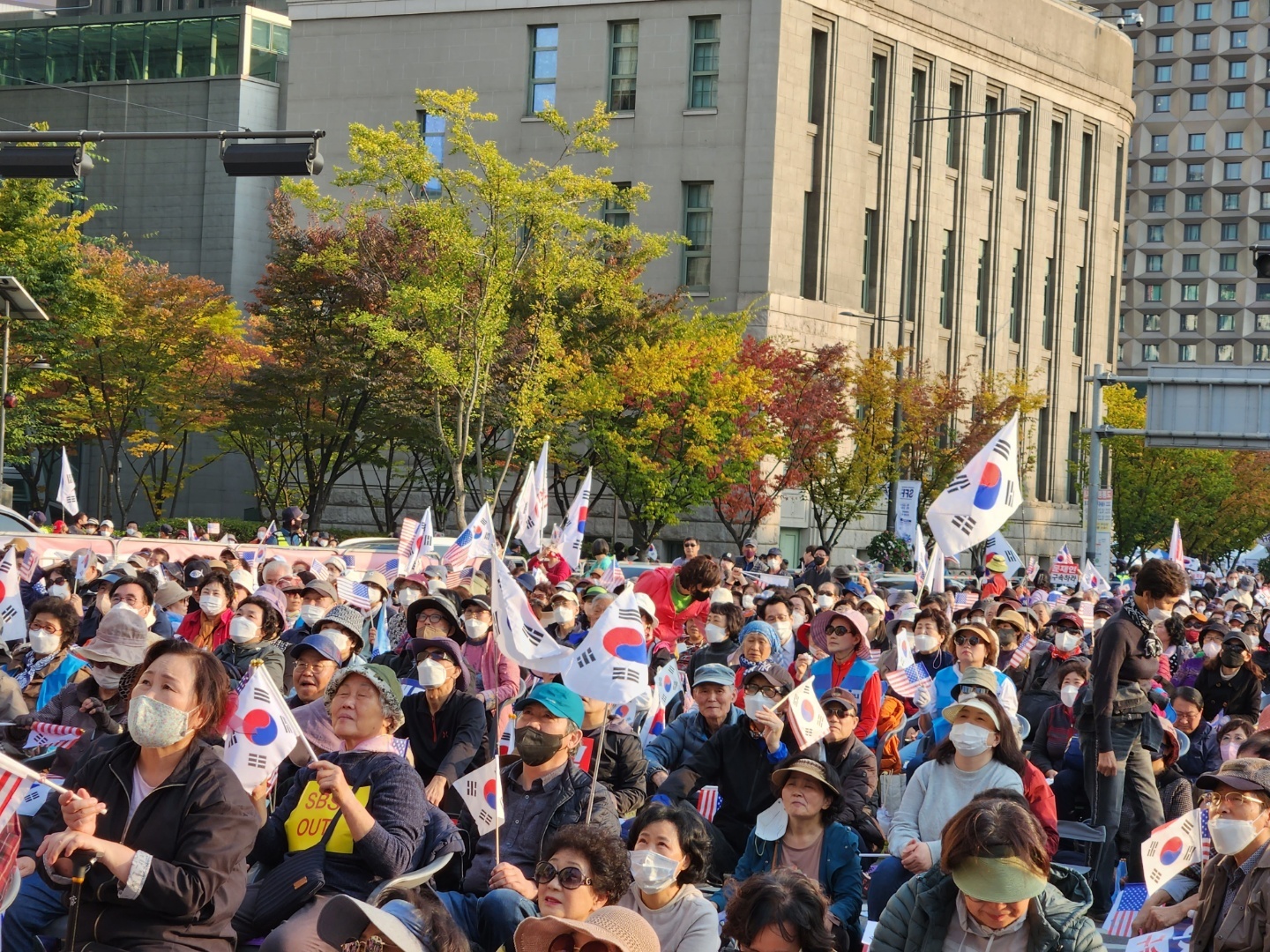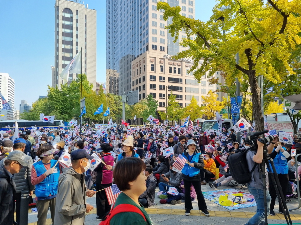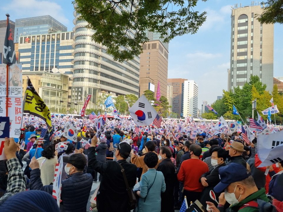 10월 22일 오후 보수·진보단체가 서울 중구 서울시청 교차로 횡단보도를 기준으로 세종대로를 남북으로 가른 채 각각 대규모 집회를 개최했다. 이날 서울 광화문 인근에 집회 참가자 5만 명 이상(경찰 추산)이 집결하면서 일대가 극심한 교통혼잡을 빚었다.