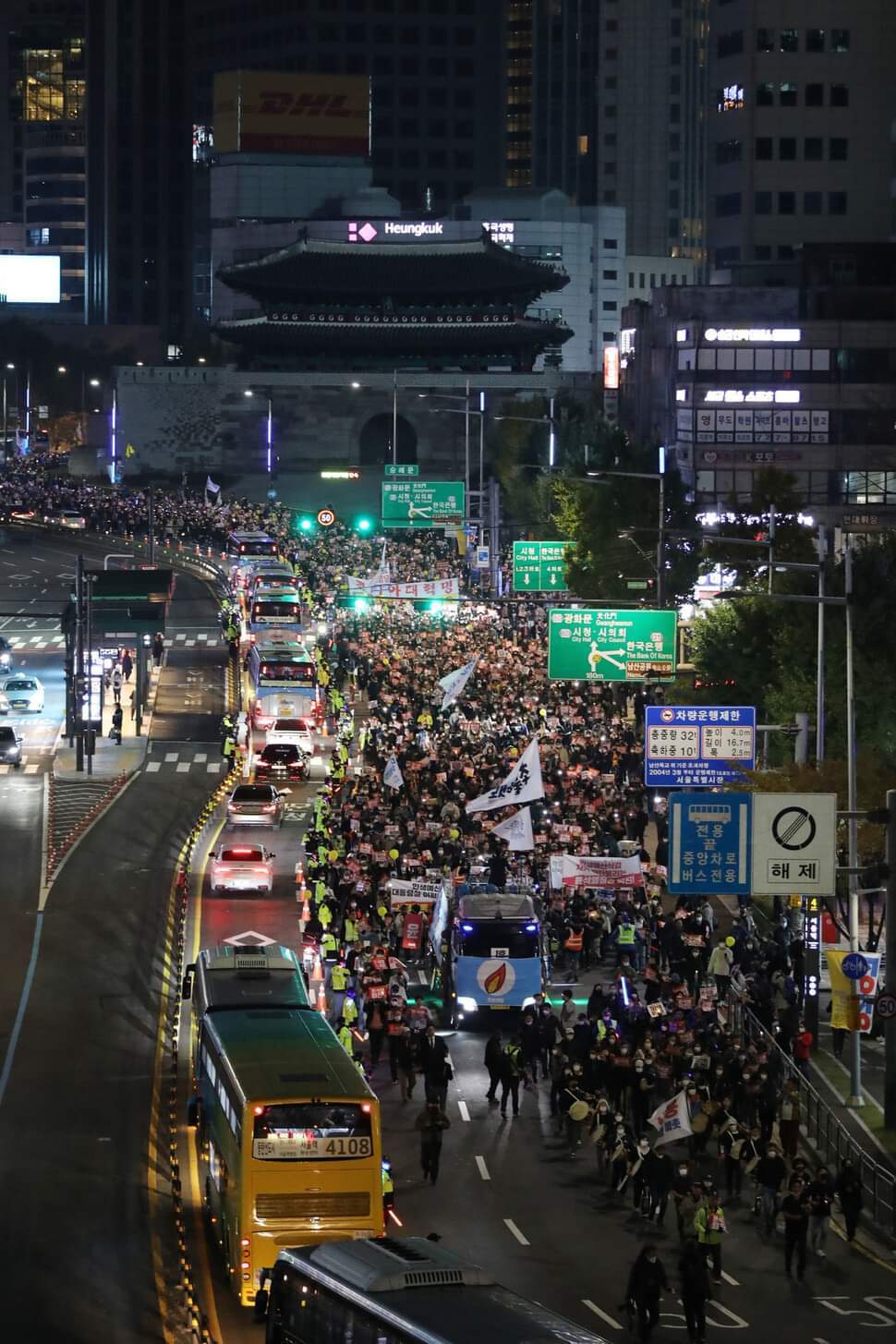 한편 촛불승리전환행동(촛불행동)은 이날 오후 4시 숭례문 오거리부터 시청 교차로까지(약 450m 구간) 편도 3개 차로를 점유한 채 ‘윤석열 정부 규탄 집회’를 열었다. 경찰 추산 약 1만8000명의 참가자는 손팻말을 들고 “윤석열 퇴진하라” “김건희 구속하라” 등의 구호를 외쳤다. 집회에는 윤석열 대통령과 부인 김건희 여사 등의 얼굴을 본뜬 대형 인형이 트럭에 실린 채 등장했다.