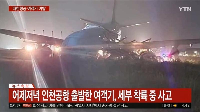 10월 23일(현지시간) 오후 11시 7분 필리핀 세부 막탄공항에서 대한항공 여객기가 착륙 후 활주로를 이탈(오버런·over-run)했다. 10월 24일 대한항공에 따르면 인천국제공항에서 10월 23일 오후 6시 35분 출발해 세부 막탄 공항으로 향한 A330-300 여객기(KE631)가 현지 기상 악화로 비정상 착륙했다.