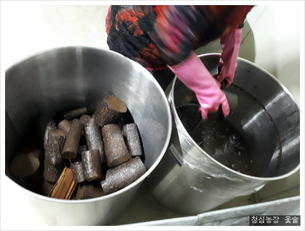 옻나무을 통에 체우고 술을 가득 체웁니다.