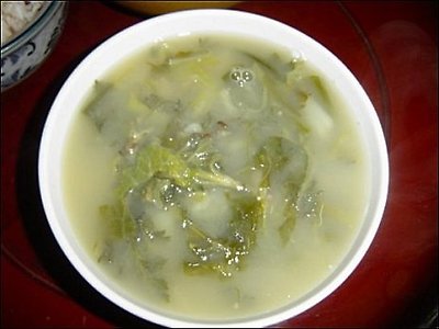 6. 쑥국이 끓으면 다진 마늘과 3~4cm 길이로 썬 잔파를 넣고, 다시 한번 살짝 끓인 뒤 집간장으로 간을 맞춘다.