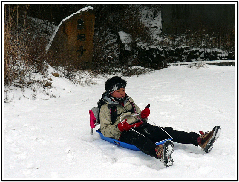 걸어서한참 내려올 거리를 눈썰매 타고 금방내려왔습니다