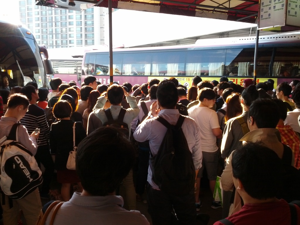추석 전날 고속버스터미널에서의 귀성인파를 뚫고 약한 버스 뒷열에 나란히 앉기까지... 큰 배낭을 메고, 그초차 엄청 힘들더라고요.