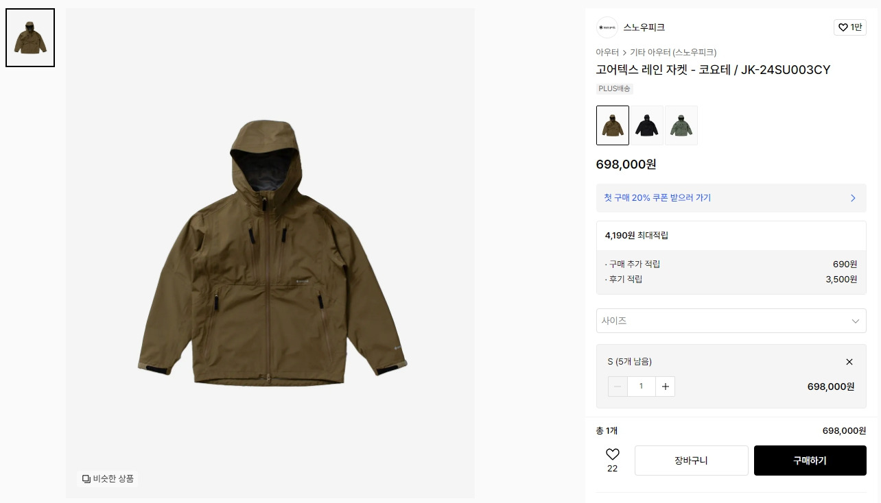 ( Snow Peak-GORE-TEX Rain Jacket in Coyote ).