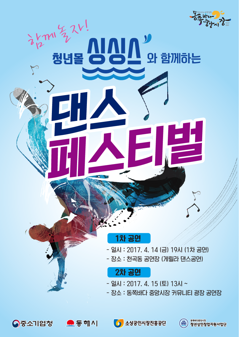 동쪽바다 중앙시장 야외무대에서 공연을 하였습니다^^/