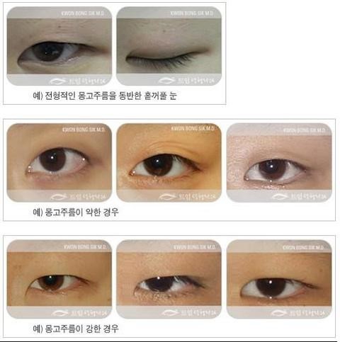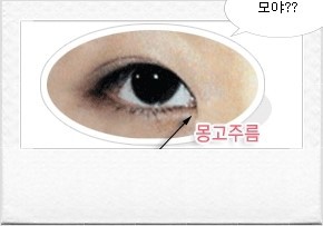 3. 몽고주름(동그라미 친 부분이 몽고주름을 나타내는 부분 입니다.)