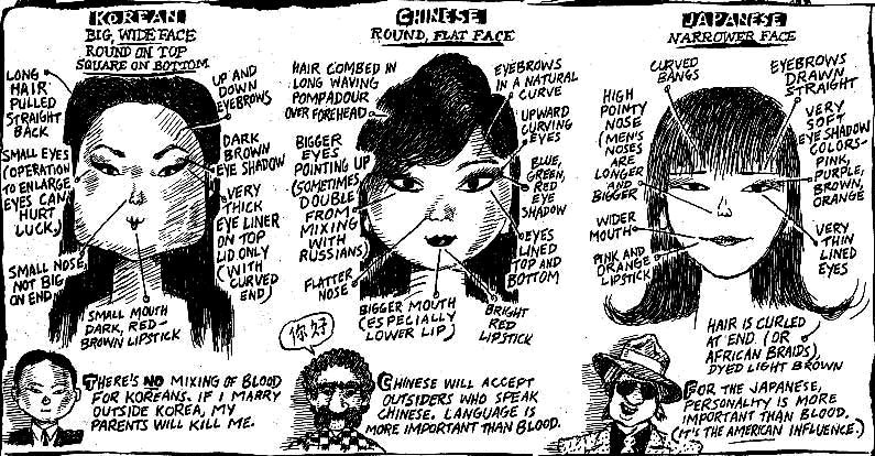 우선 간략하게 중국, 일본, 한국의 얼굴 특징을 간략하게 말해보자면
