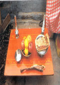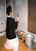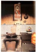 또한 조왕신을 위해서는 부뚜막보다 높은 곳에 팥시루떡 시루와 북어, 정화수를 차려놓았다.