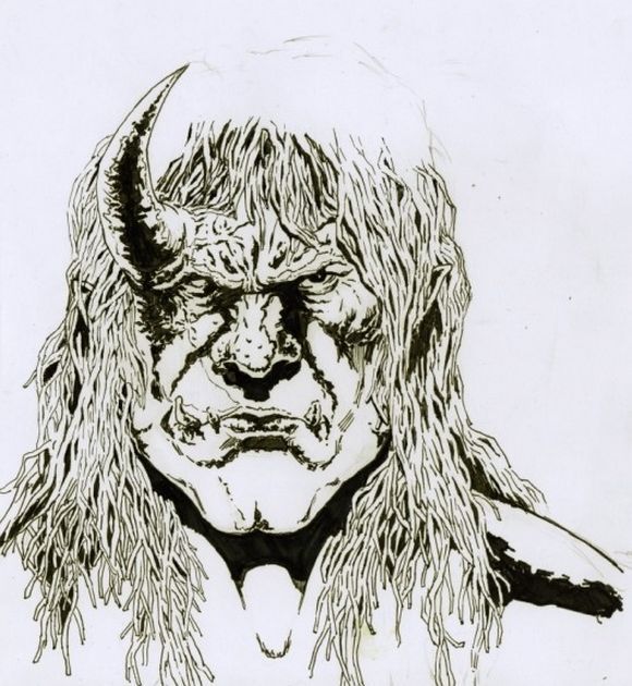 덩치가 산만하며 머리카락은 불이 붙은듯하고, 시뻘건 눈은 온통 충혈되어 있으며, 날카로운 손톱을 길게 기르고 있다.