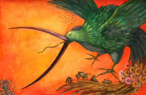 꼬리 깃이 닷 발, 부리가 닷 발이나 되는, 새처럼 생긴 괴물로 나오며,