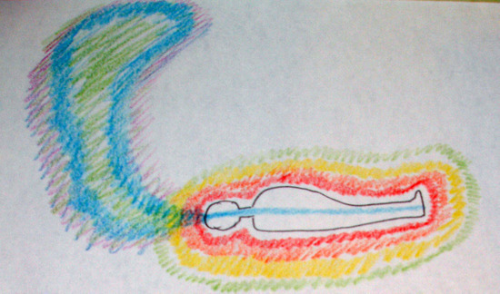 거대한 중앙의 공간을 가진 도우넛 모양의 바이오 에너지의 흐름으로 시계 방향으로 회전 운동하면서