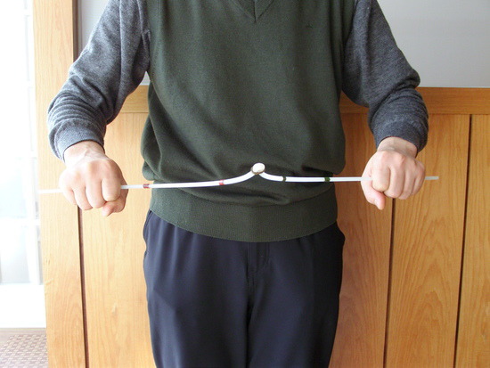 양팔은 팔꿈치를 펴지 말고 편안하고 자연스러운 자세로 힘을 빼고 앞으로 내밀고,