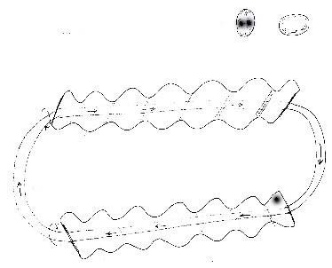 도넛의 윗 부분에서 아래 부분으로 중심을 둘러싸고 순환하는 우리의 전체적인 은하를 통하여 흐르고 있는