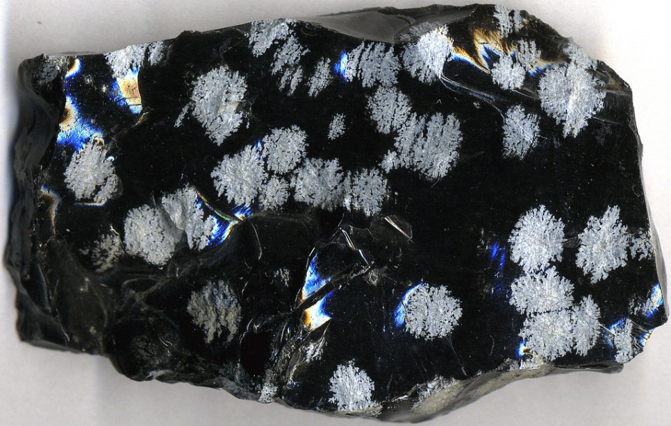 위 사진은 '눈꽃 모양 흑요석(snowflake obsidian)' 으로,