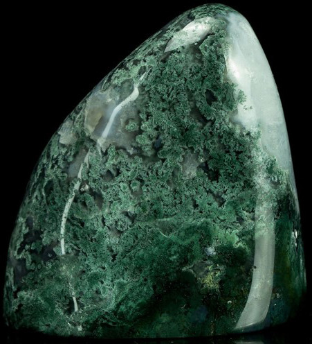 녹색 이끼 형상의 모스 들이 아게이트에 증식 되어 생성 된 상태의,