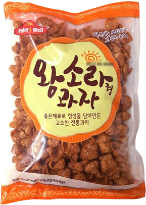 바삭바삭하면서 깨까지 더해져 고소하고 달콤한 왕소라형 과자.