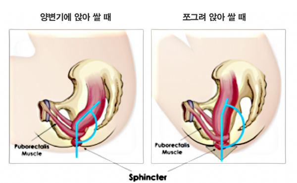항문직장각이 170도로 커지면서 변이 더 잘 빠져나온다는 말이지요.