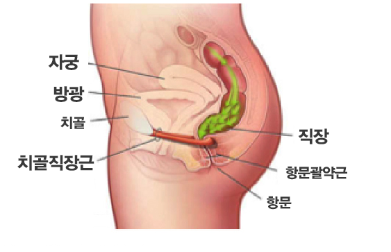 평상시에는 치골직장근이 직장을 땡겨주고 있기 때문에