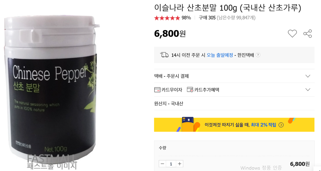 소주와 산초를 끓인 물: