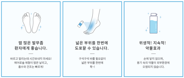 아무래도 넓은 부위를 빠르게 도포하기 수월하기 때문에, 요즘같이 덥고 습한 여름철에 수요가 급증하는 제품이에요~