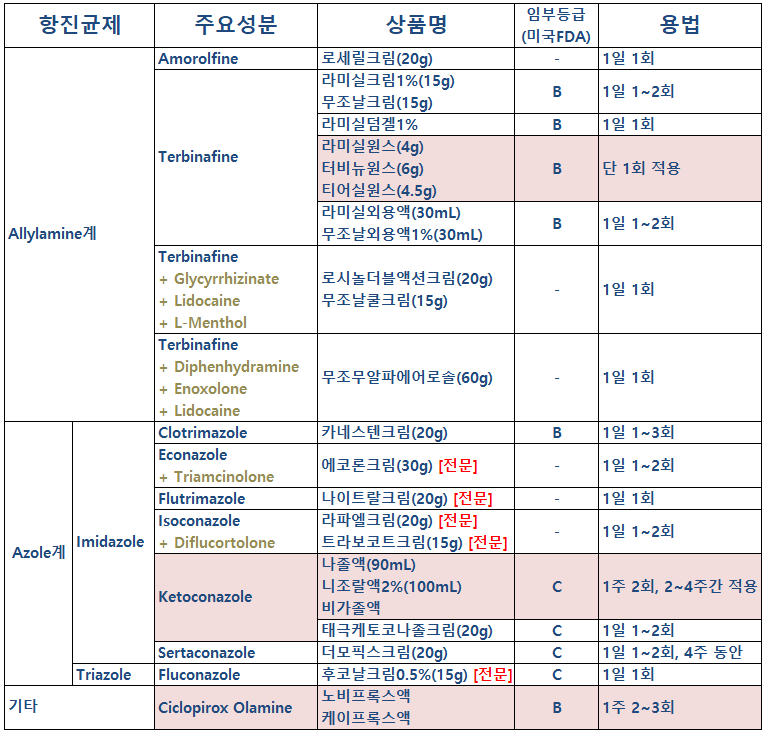 (Terbinafine성분이 ~azole 계열보다 일반적으로 가격이 좀 있는 편이에요.)